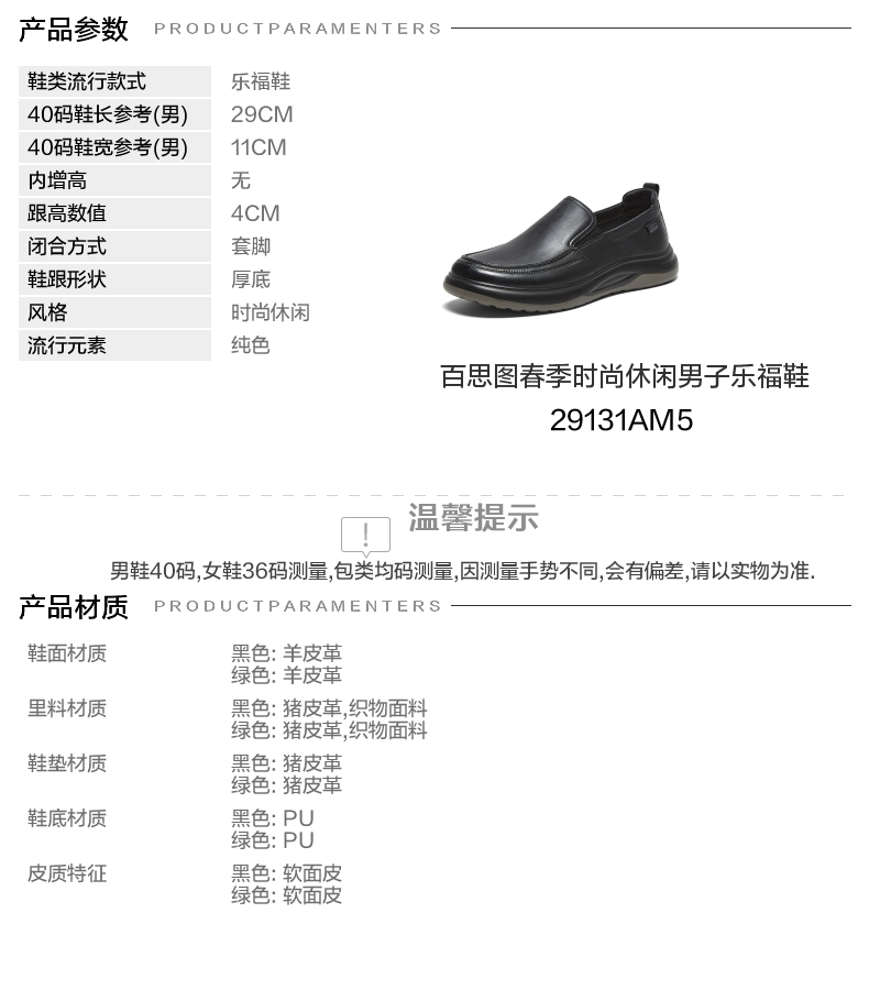 | 鞋面材质:羊皮革 | 适用场合:日常休闲 | 闭合方式:套脚 | 所在区域:电子商务 | 40码鞋宽参考(男):11CM |