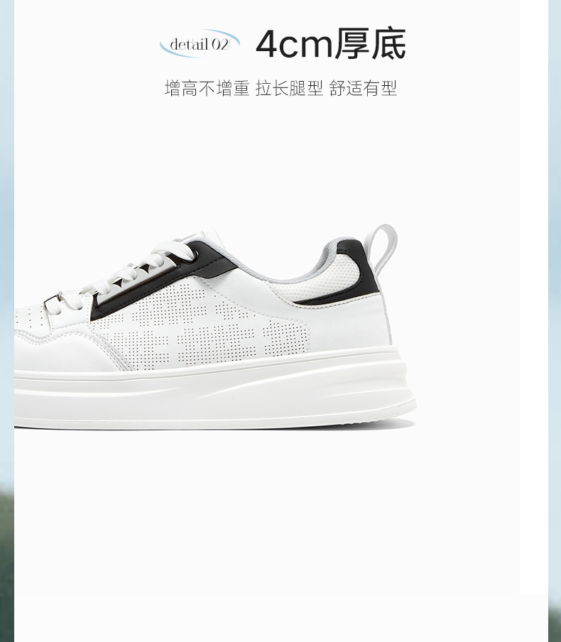 | 风格:运动休闲 | 色系:白色 | 跟高数值:4CM | 40码鞋宽参考(男):10.5CM | 性别:男子 |