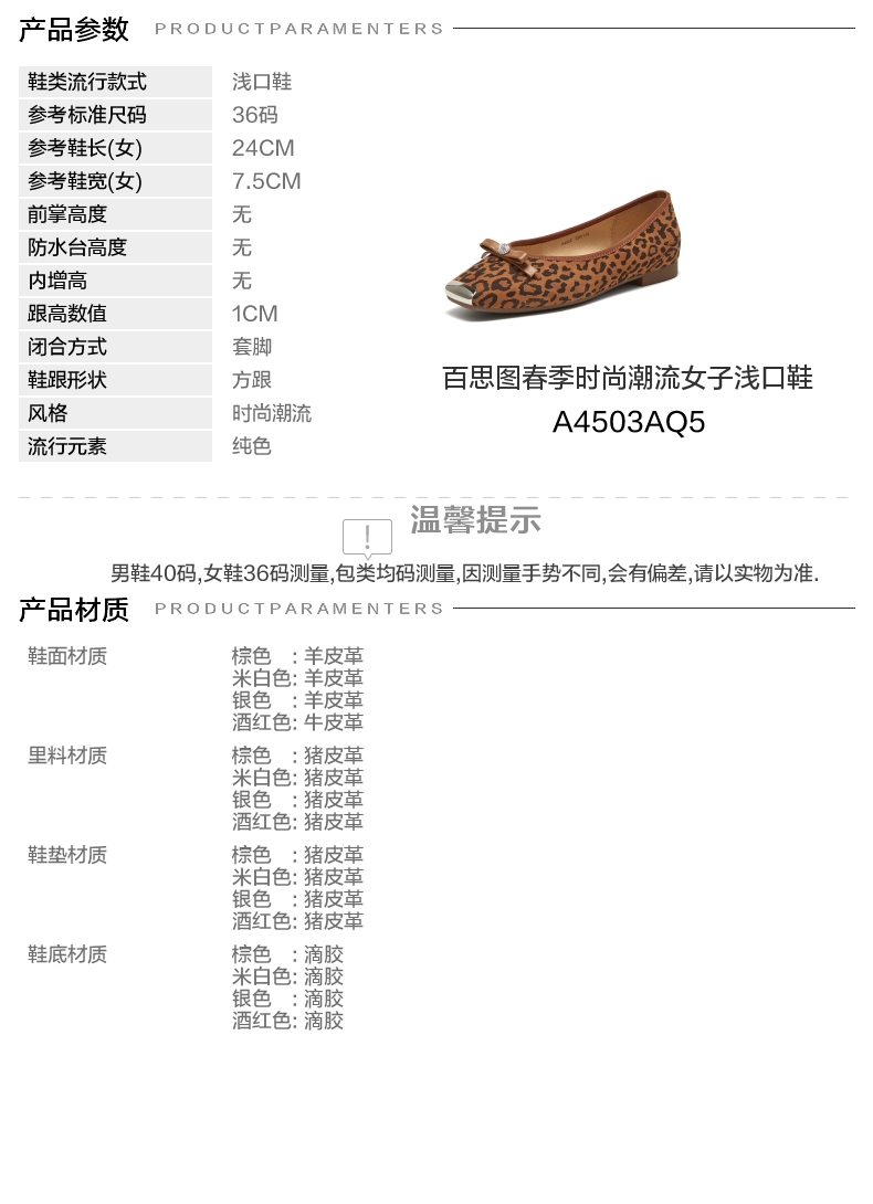 | 上市时间:2025年春季 | 生产/经销/进口厂家:丽荣鞋业(深圳)有限公司 | 鞋类流行款式:浅口鞋 | 鞋头款式:方头 | 执行标准:皮鞋 QB/T1002-2015 |