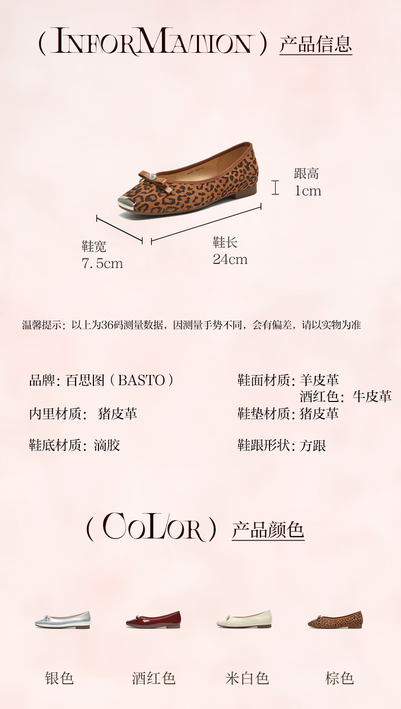 | 参考标准尺码:36码 | 跟高数值:1CM | 性别:女子 | 里料材质:猪皮革 | 制鞋工艺:胶贴皮鞋 |