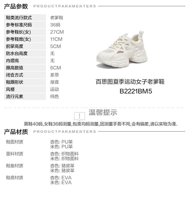 | 风格分类:老爹鞋 | 上市时间:2025年夏季 | 生产/经销/进口厂家:丽荣鞋业(深圳)有限公司 | 鞋类流行款式:老爹鞋 | 鞋头款式:圆头 |