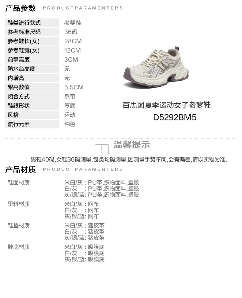 | 配跟:无 | 上市时间:2025年夏季 | 鞋类流行款式:老爹鞋 | 鞋头款式:圆头 | 鞋面图案:纯色 |