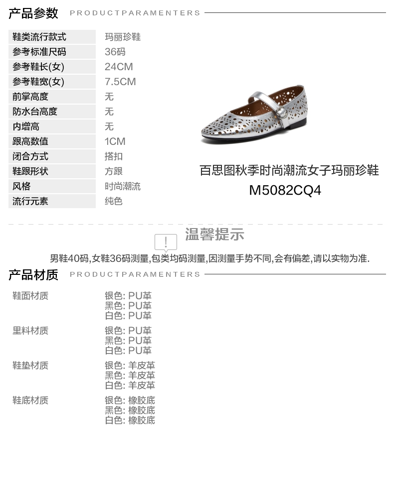 | 皮质特征:PU | 前掌高度:无 | 防水台高度:无 | 鞋类流行款式:玛丽珍鞋 |