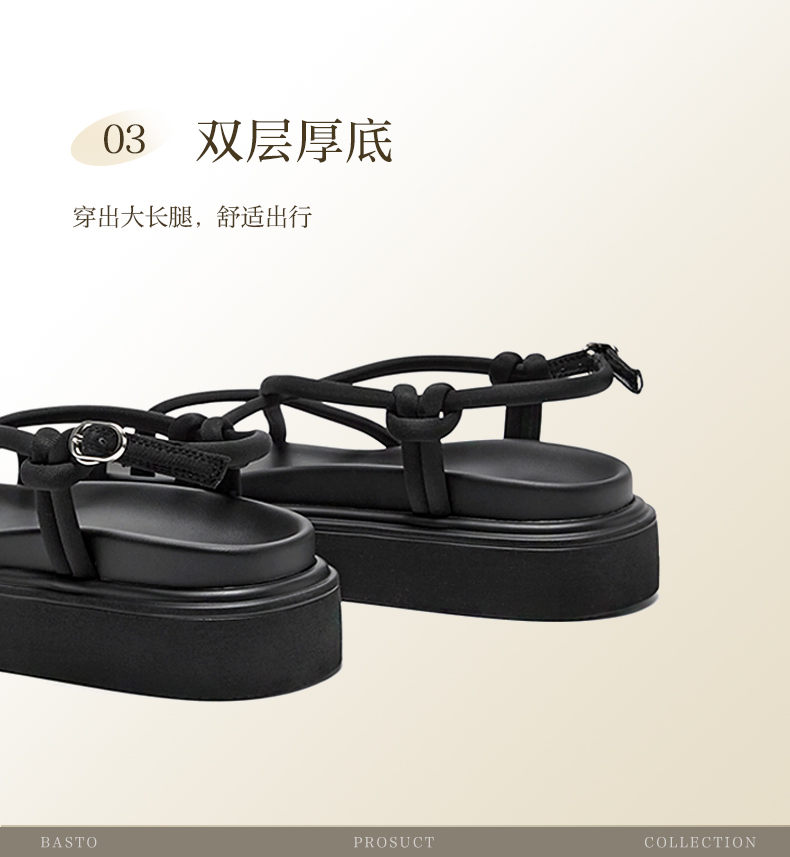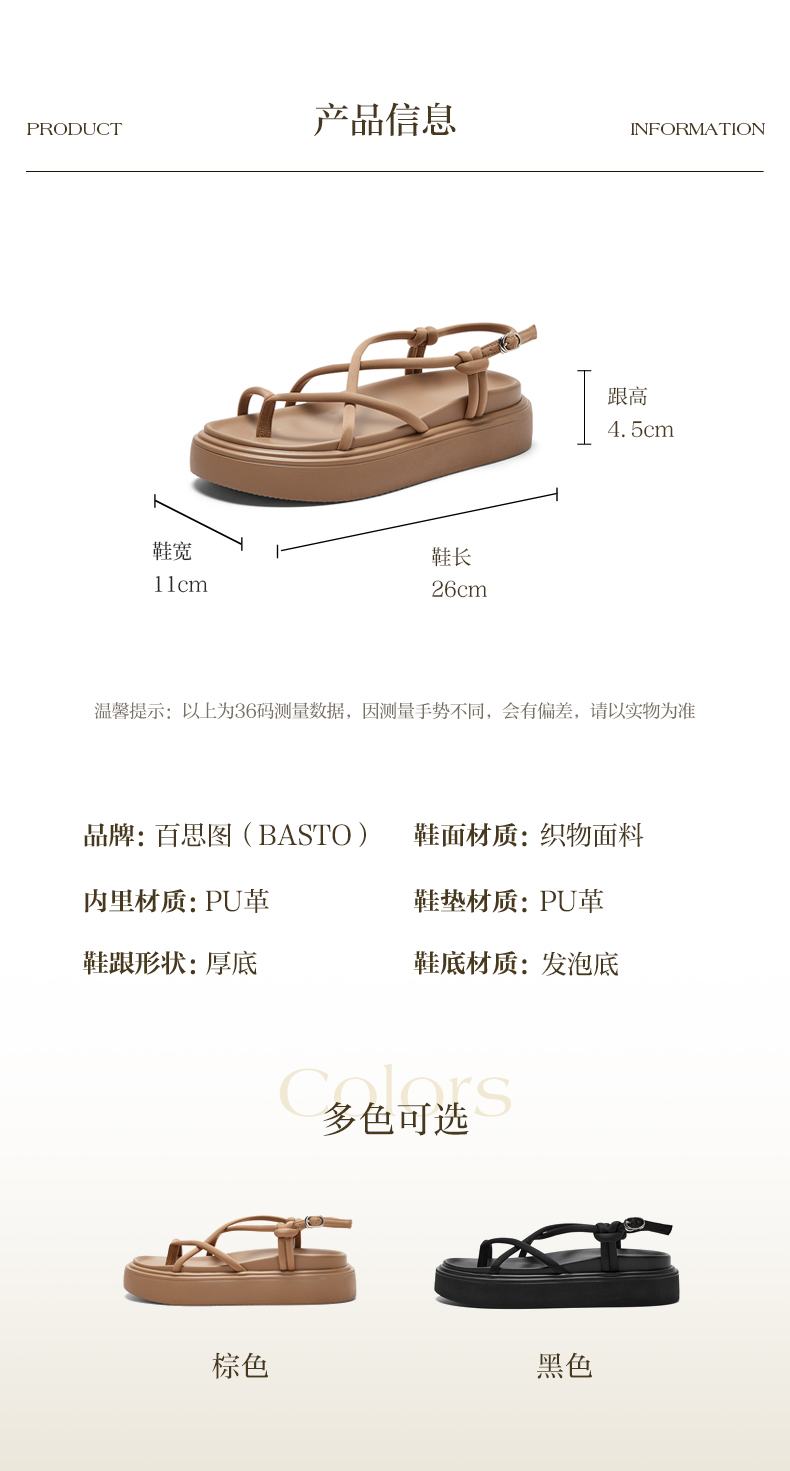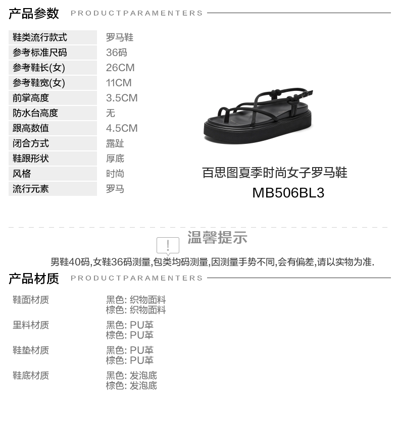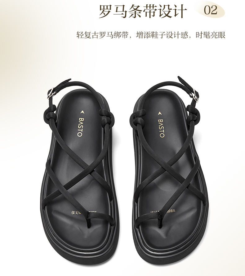 | 鞋类流行款式:罗马鞋 | 鞋头款式:露趾 | 执行标准:舒适运动鞋Q/LR002-2023 | 跟高范围:中跟鞋(3-5CM) | 鞋面图案:纯色 |