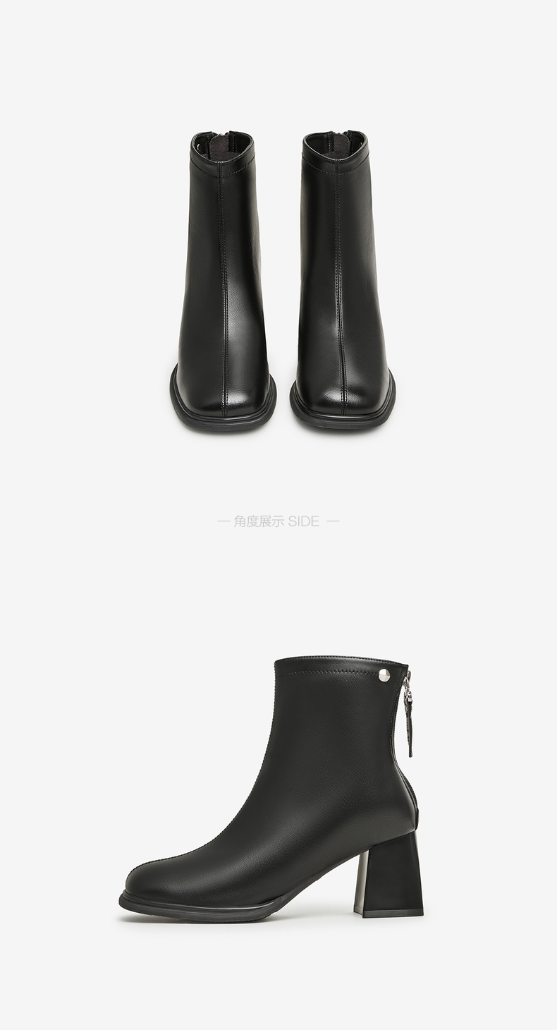 | 鞋类流行款式:时装靴 | 鞋头款式:方头 | 执行标准:皮鞋 QB/T1002-2015 | 跟高范围:高跟鞋(6-8CM) | 鞋面图案:纯色 |