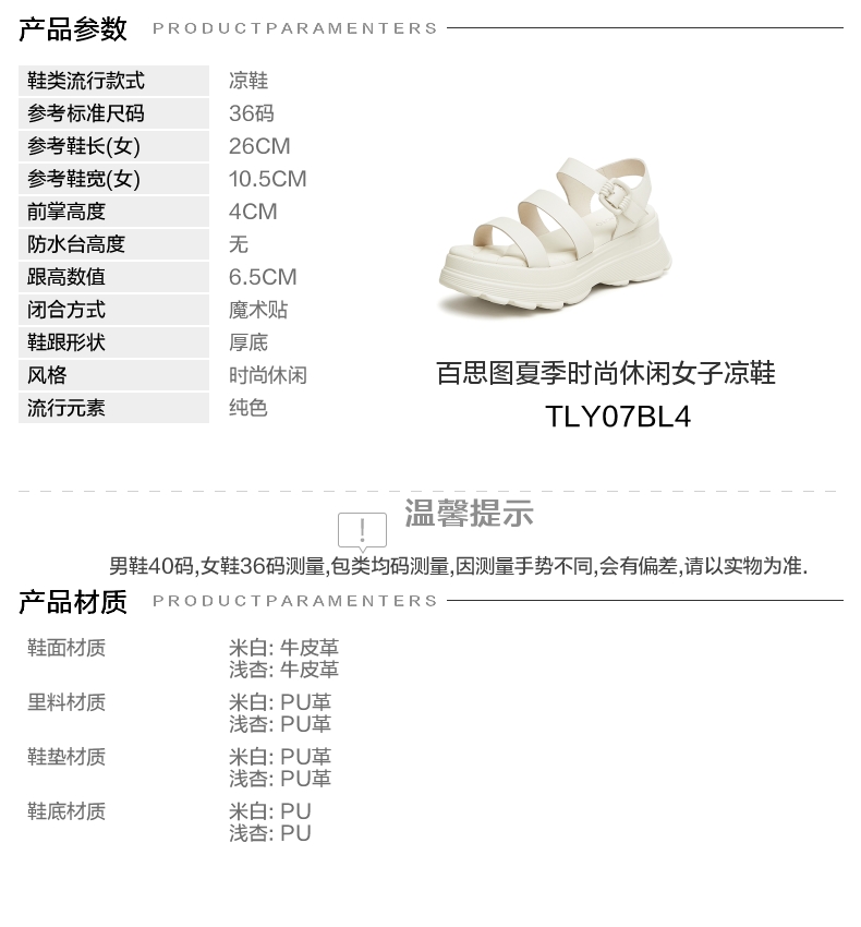 | 风格:时尚休闲 | 年份:2024年 | 色系:白色 | 参考标准尺码:36码 | 跟高数值:6.5CM |