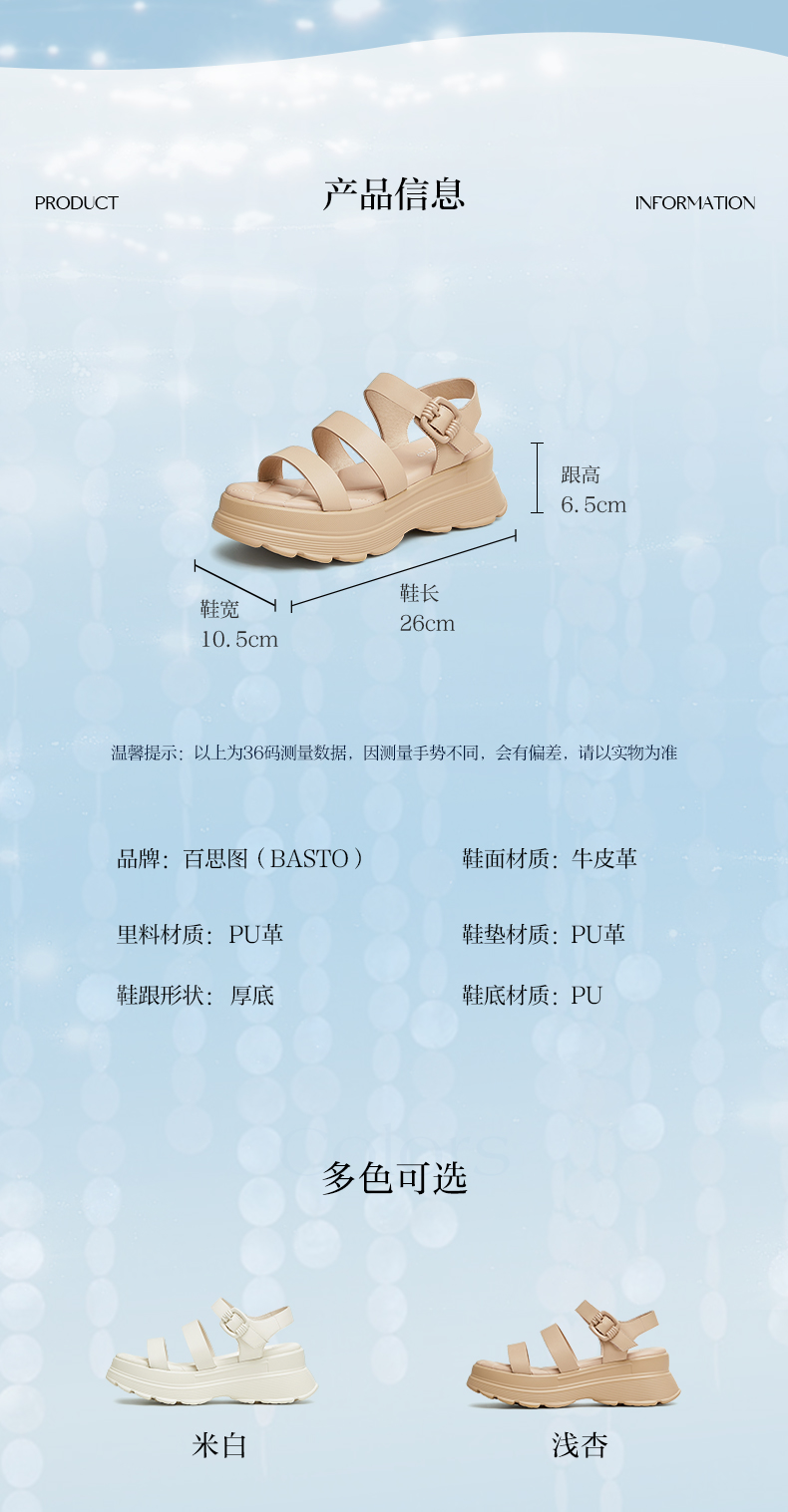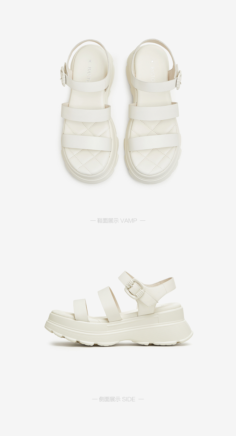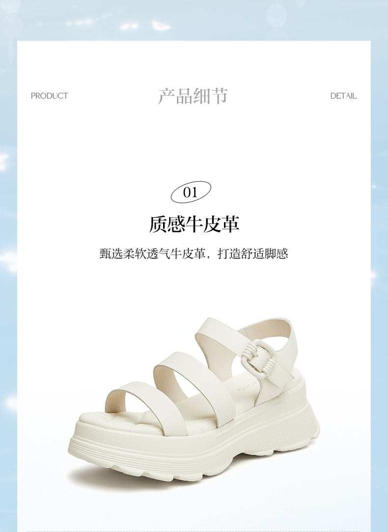 | 渠道划分:线下同步 | 前掌高度:4CM | 皮质特征:牛皮革 | 防水台高度:无 | 销售季:2024年夏季 |