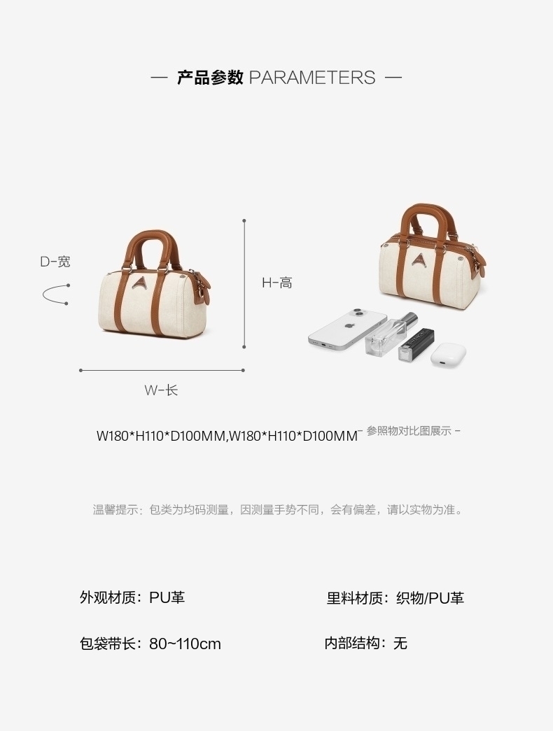 | 年份:2024年 | 色系:米白 | 适用场景:通勤 | 流行款式名称:波士顿包 | 开袋方式:拉链 |