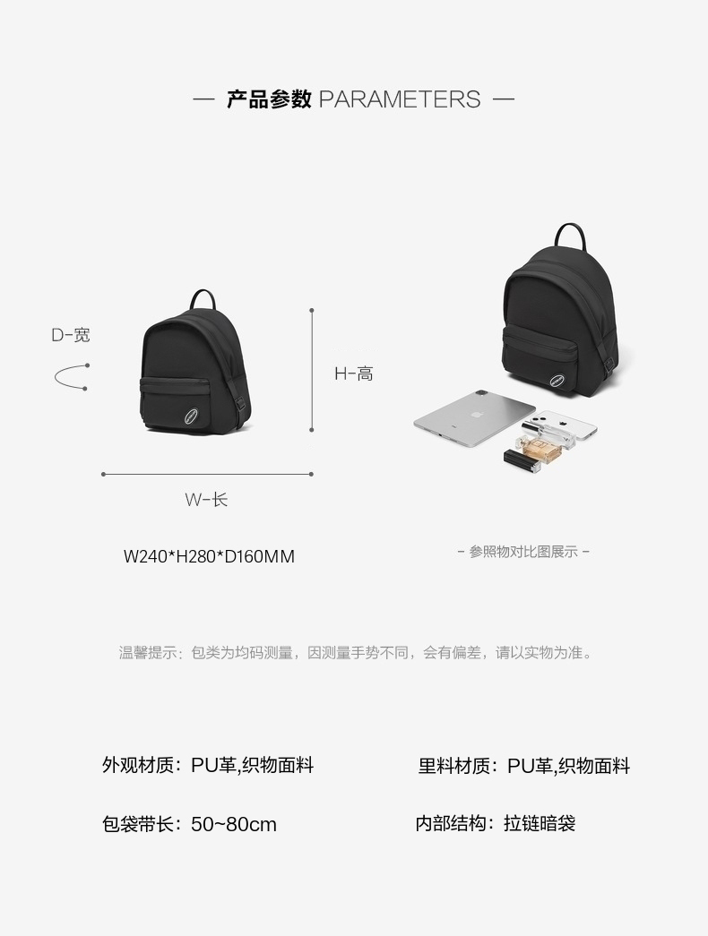 | 流行元素:纯色 | 肩带是否可调节:可调节 | 包的规格:W240*H280*D160MM | 内部结构:拉链暗袋 | 背带方式:双肩 |