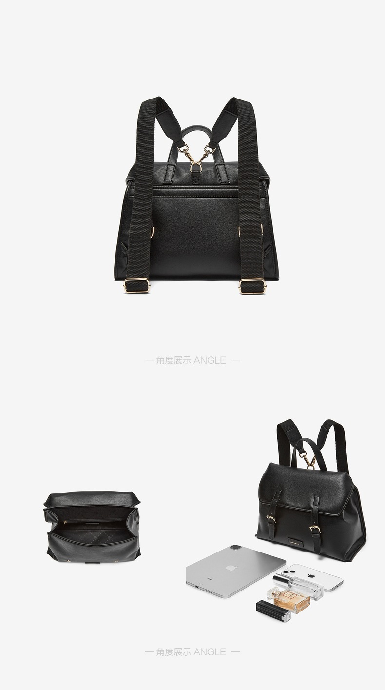 | 流行元素:纯色 | 包的规格:W325*H240*D120MM | 内部结构:拉链暗袋 | 背带方式:双肩 | 风格:OL通勤 |