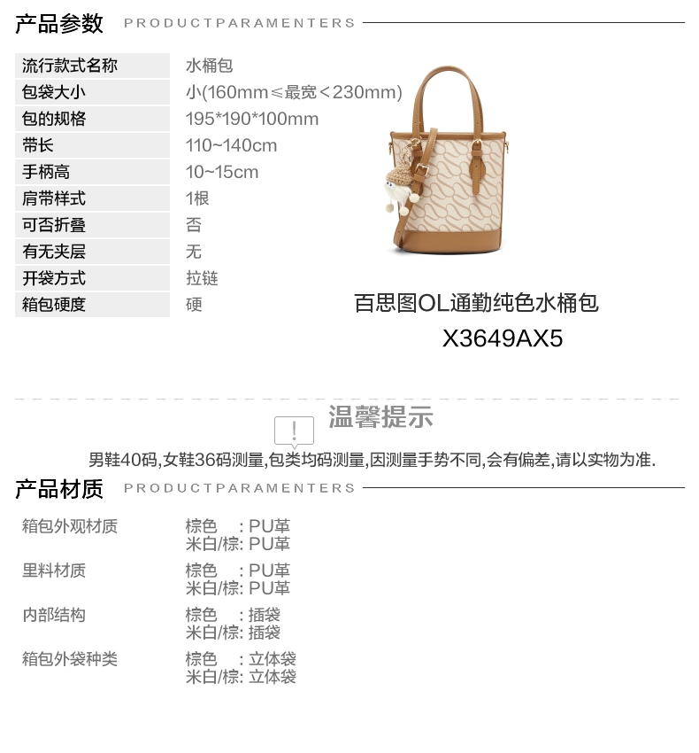 | 风格:OL通勤 | 年份:2025年 | 色系:米白 | 适用场景:通勤 | 流行款式名称:水桶包 |