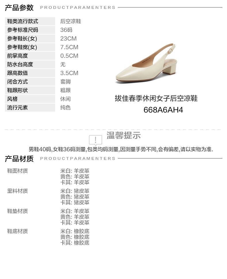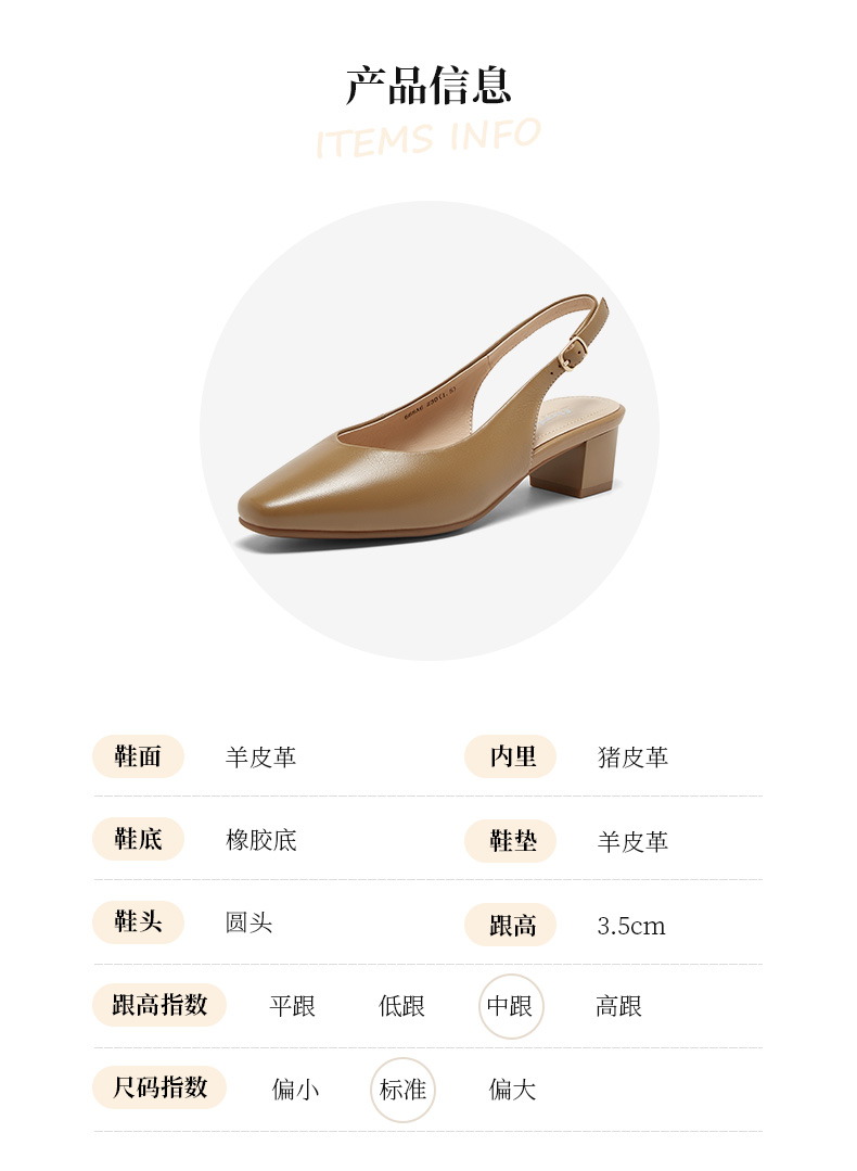 | 配跟:无 | 风格分类:中高跟单凉 | 上市时间:2024年春季 | 鞋类流行款式:后空凉鞋 | 鞋头款式:圆头 |