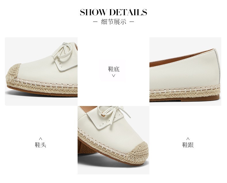 | 上市时间:2025年春季 | 鞋类流行款式:渔夫鞋 | 鞋头款式:圆头 | 跟高范围:低跟鞋(小于3CM) | 鞋面图案:纯色 |