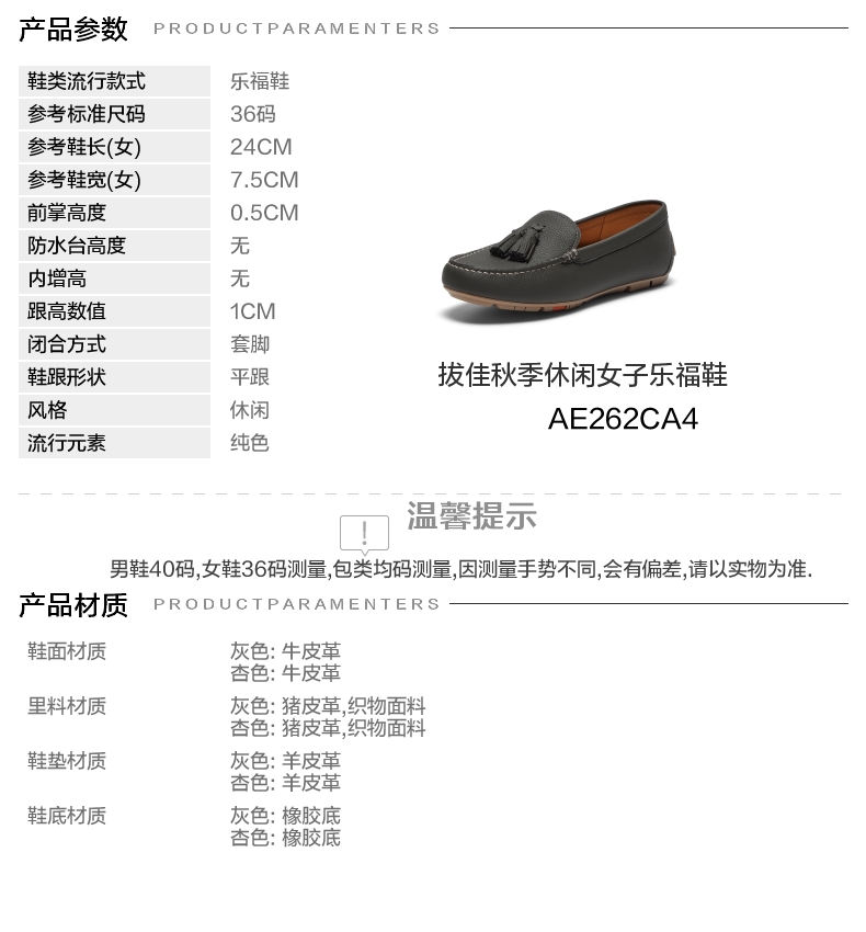 | 前掌高度:0.5CM | 皮质特征:软面皮 | 销售季:2024年秋季 | 防水台高度:无 |