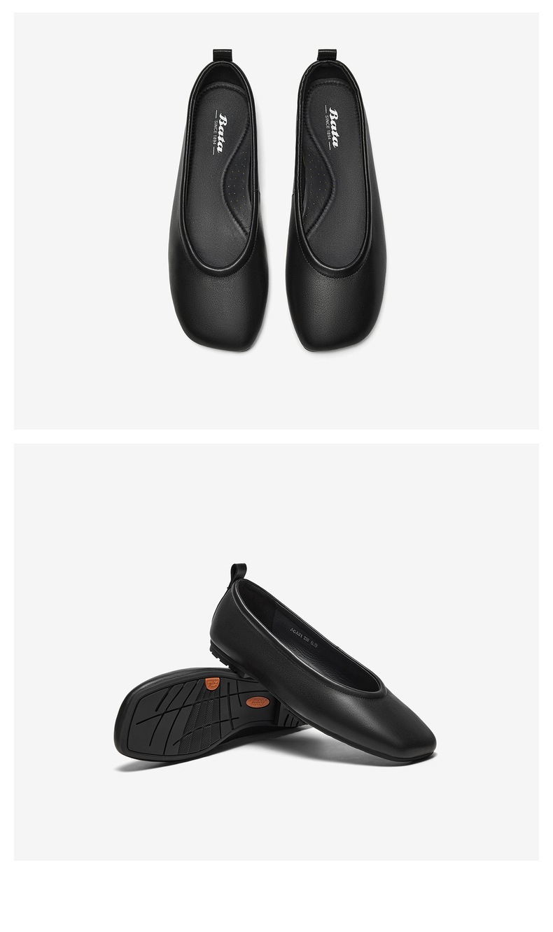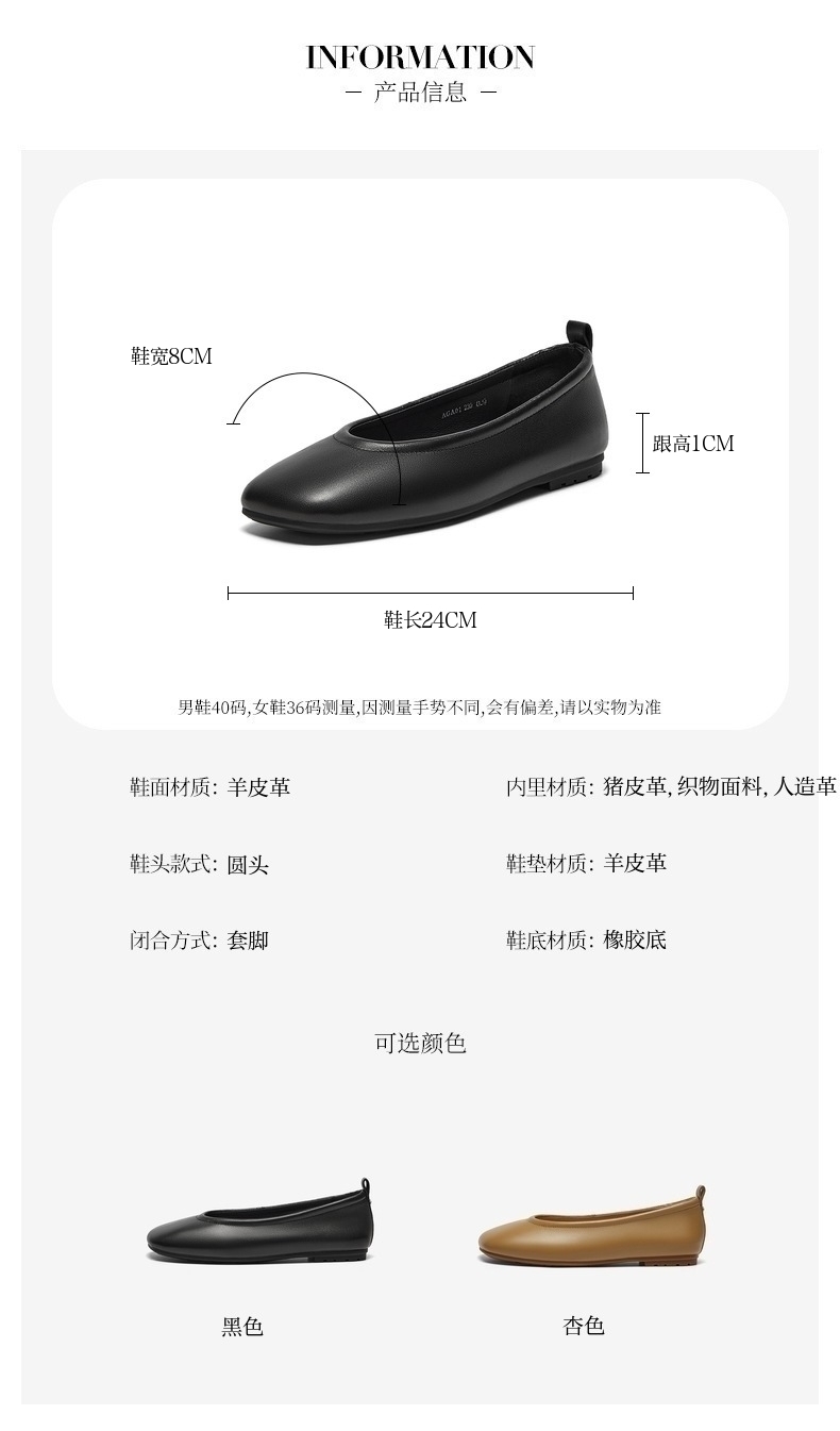 | 鞋类流行款式:浅口鞋 | 鞋头款式:圆头 | 跟高范围:低跟鞋(小于3CM) | 鞋面图案:纯色 | 鞋跟形状:平跟 |