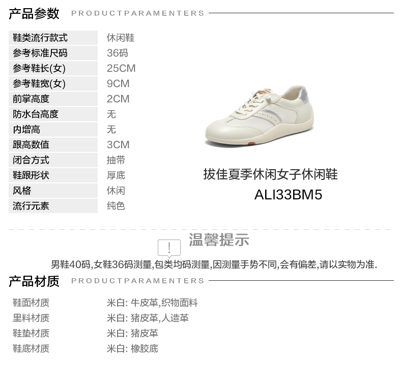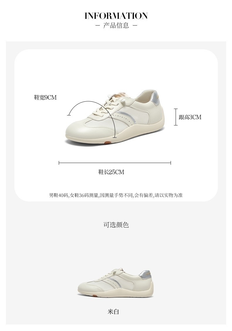 | 年份:2025年 | 色系:米白 | 参考标准尺码:36码 | 跟高数值:3CM | 性别:女子 |