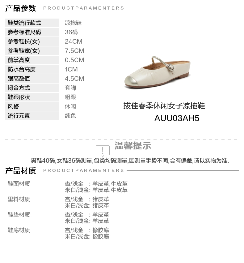 | 配跟:无 | 风格分类:包头拖 | 上市时间:2025年春季 | 鞋类流行款式:凉拖鞋 | 鞋头款式:包头 |