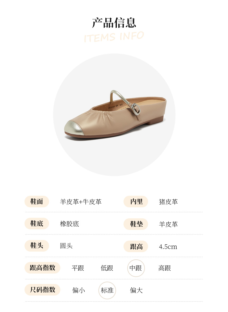 | 款式季节:春季 | 渠道划分:线下同步 | 前掌高度:0.5CM | 皮质特征:软面皮 | 销售季:2025年春季 |