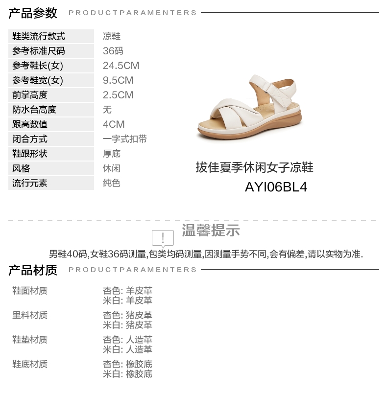 | 参考鞋宽(女):9.5CM | 风格:休闲 | 年份:2024年 | 色系:米色 | 参考标准尺码:36码 |