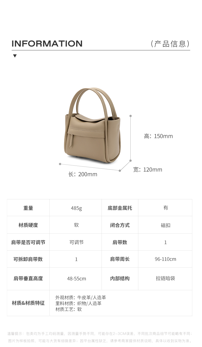 | 手柄高:10~15cm | 内里:织物/人造革 | 款式季节:秋季 | 材质工艺:软面皮 | 渠道划分:电商专销 |