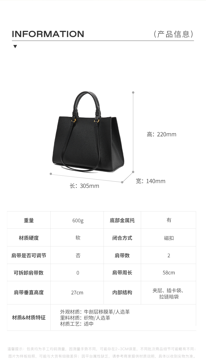 | 闭合方式:磁扣 | 所在区域:电子商务 | 是否防水:否 | 风格分类:托特包 | 上市时间:2024年冬季 |