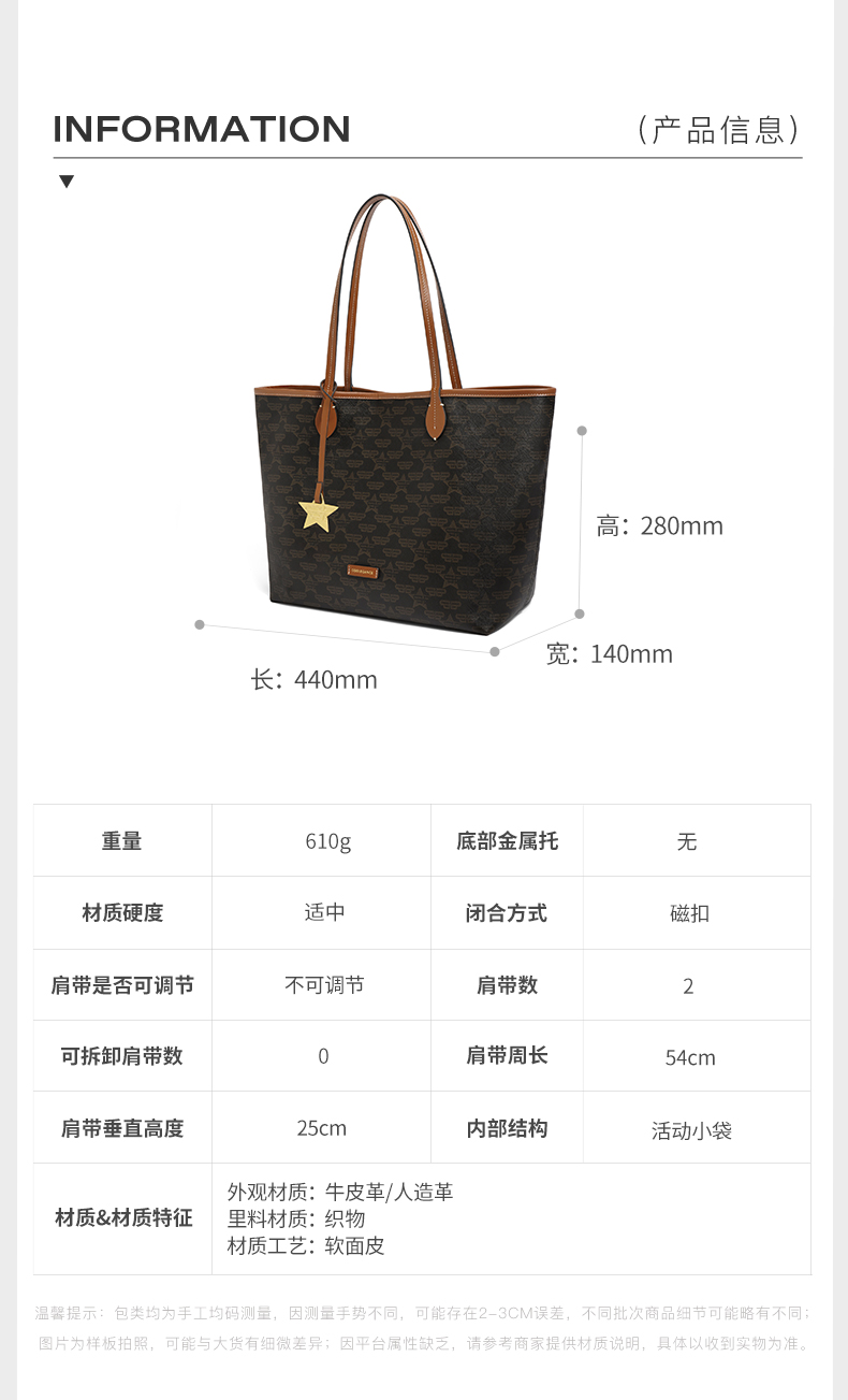 | 闭合方式:磁扣 | 所在区域:省仓 | 是否防水:否 | 风格分类:托特包 | 上市时间:2024年春季 |