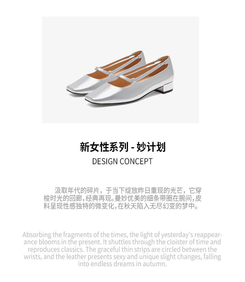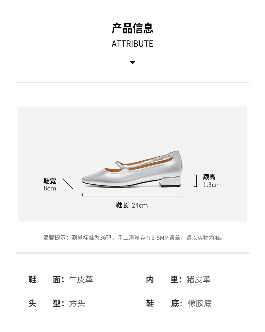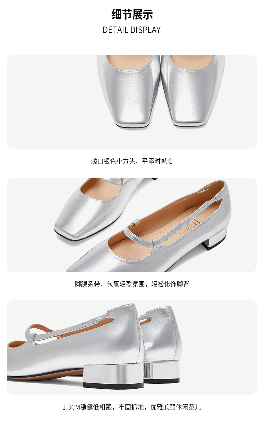 | 上市时间:2023年秋季 | 鞋类流行款式:浅口鞋 | 鞋头款式:方头 | 跟高范围:低跟鞋(小于3CM) | 鞋面图案:纯色 |
