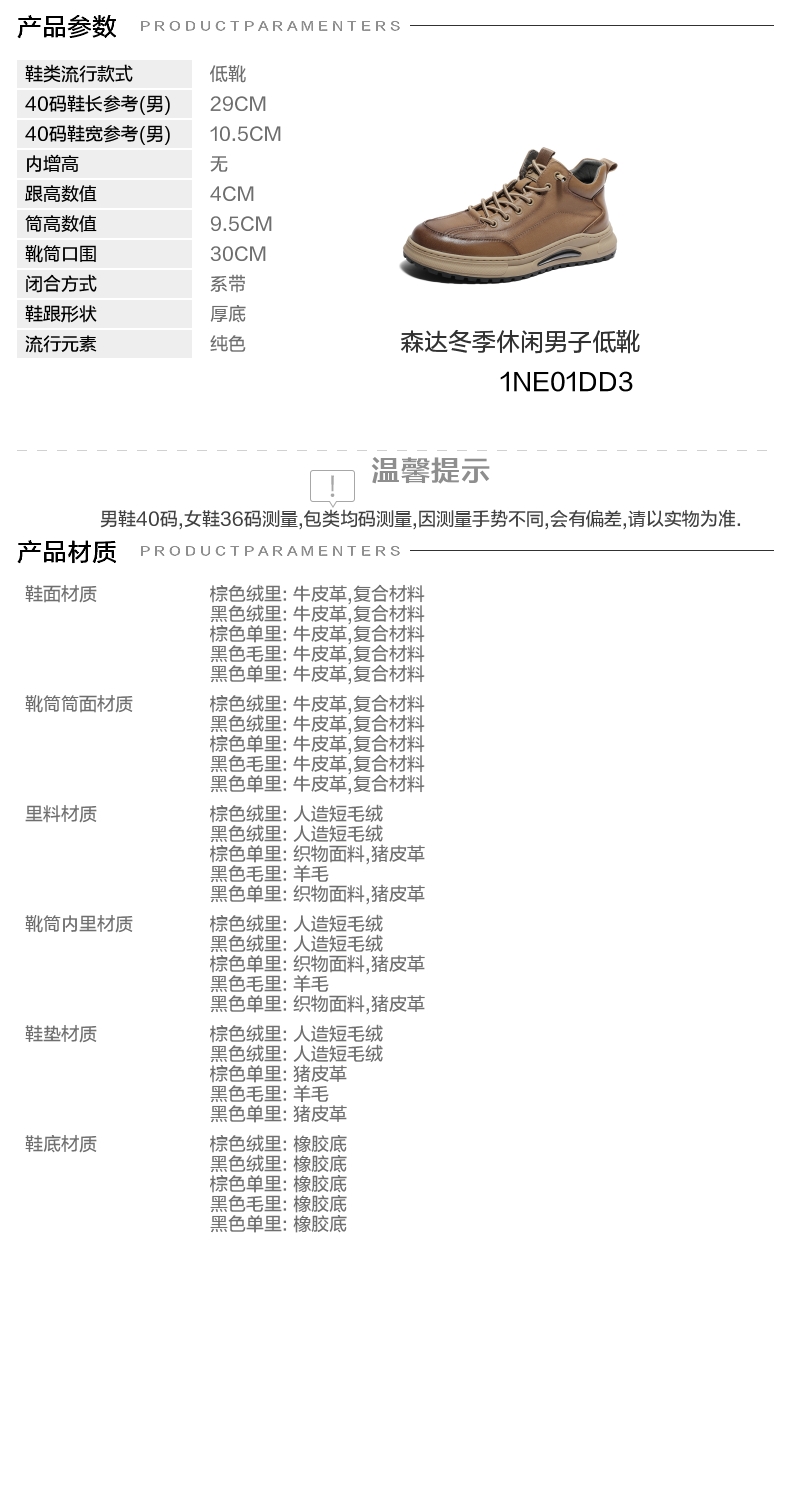 | 靴筒口围:30CM | 风格分类:工装靴 | 上市时间:2023年冬季 | 生产/经销/进口厂家:江苏新森达鞋业有限公司 | 鞋类流行款式:低靴 |