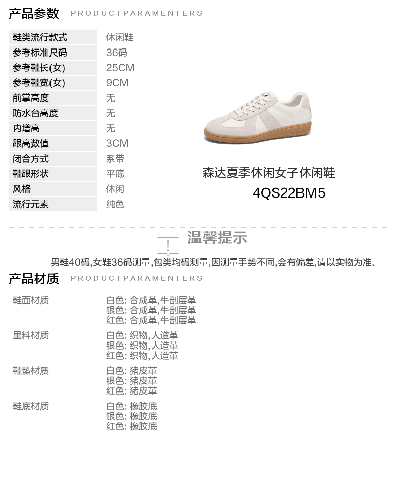 | 参考鞋长(女):25CM | 参考鞋宽(女):9CM | 风格:休闲 | 色系:白色 | 参考标准尺码:36码 |