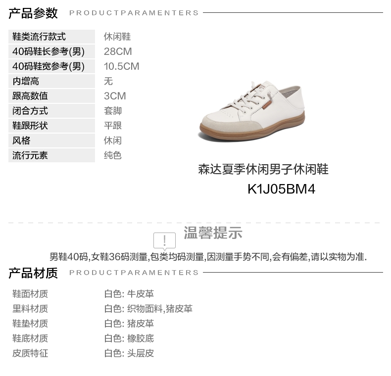 | 40码鞋长参考(男):28CM | 鞋帮:低帮 | 鞋底材质:橡胶底 | 内增高:无 | 鞋面材质:牛皮革 |