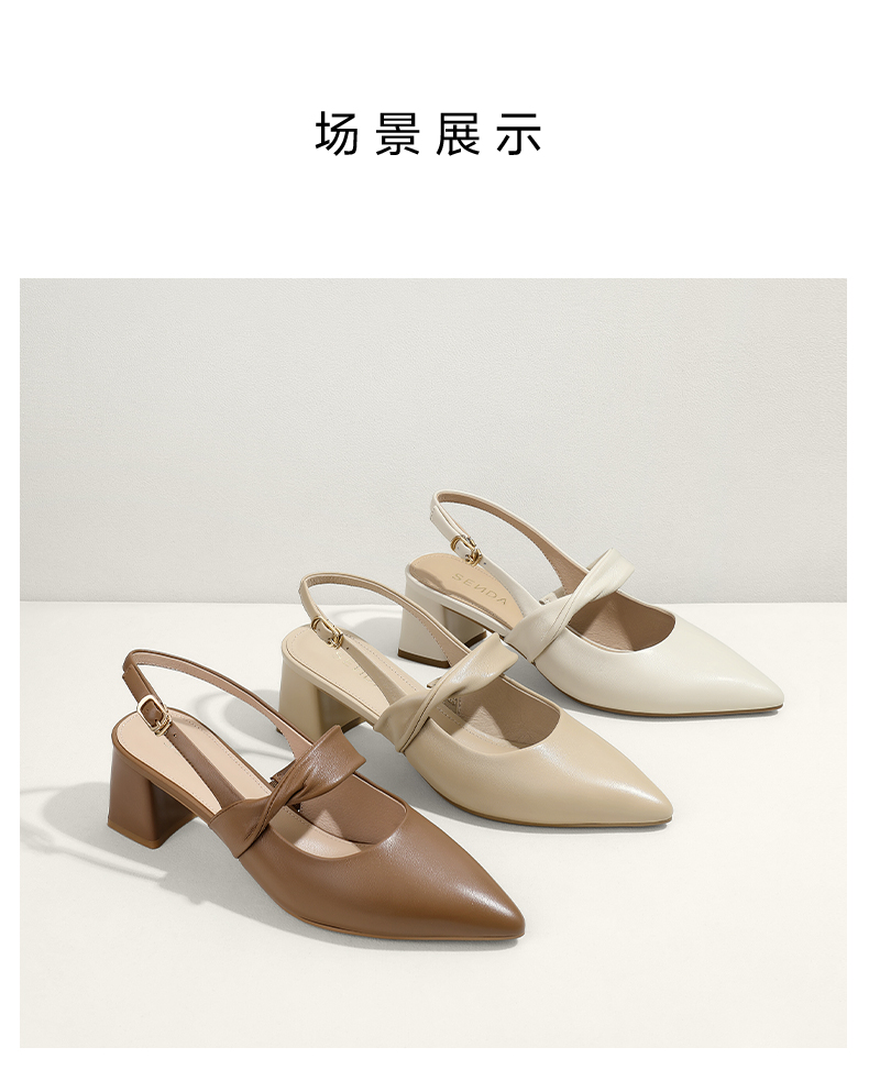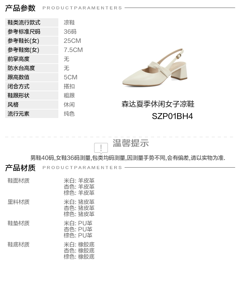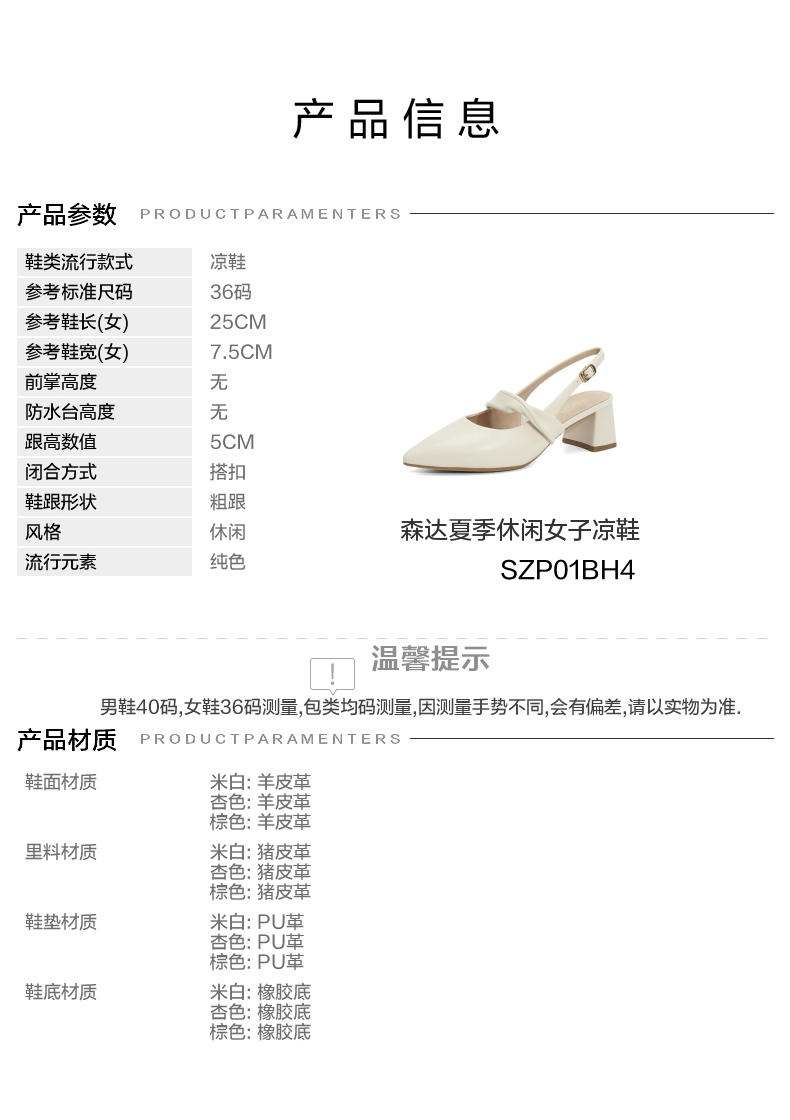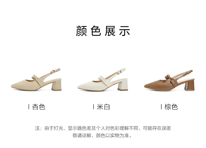 | 鞋头款式:尖头 | 执行标准:皮凉鞋GB/T22756-2017 | 跟高范围:中跟鞋(3-5CM) | 鞋面图案:纯色 | 鞋跟形状:粗跟 |