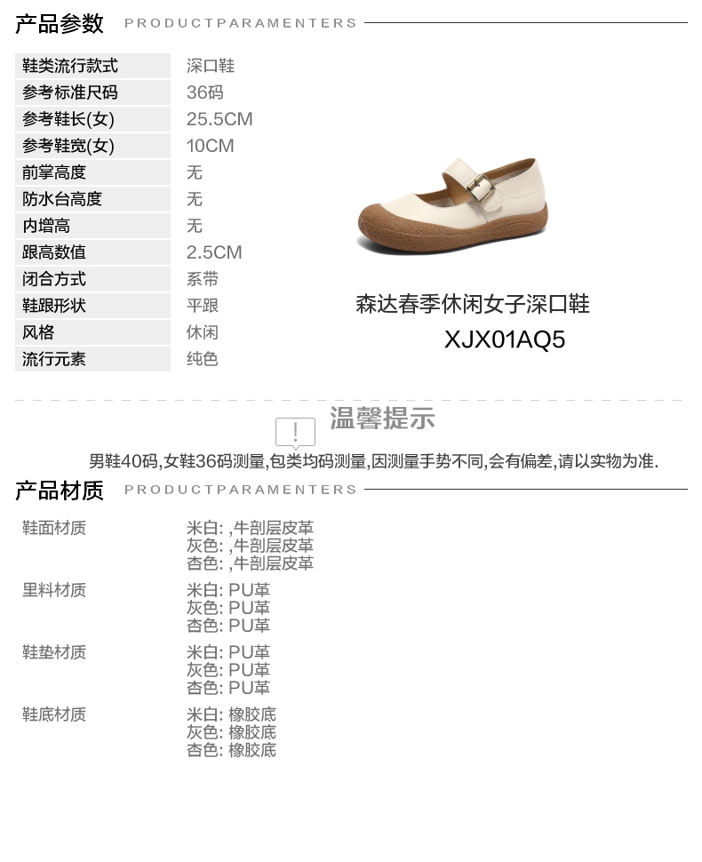 | 参考鞋宽(女):10CM | 风格:休闲 | 年份:2025年 | 色系:米白 | 参考标准尺码:36码 |
