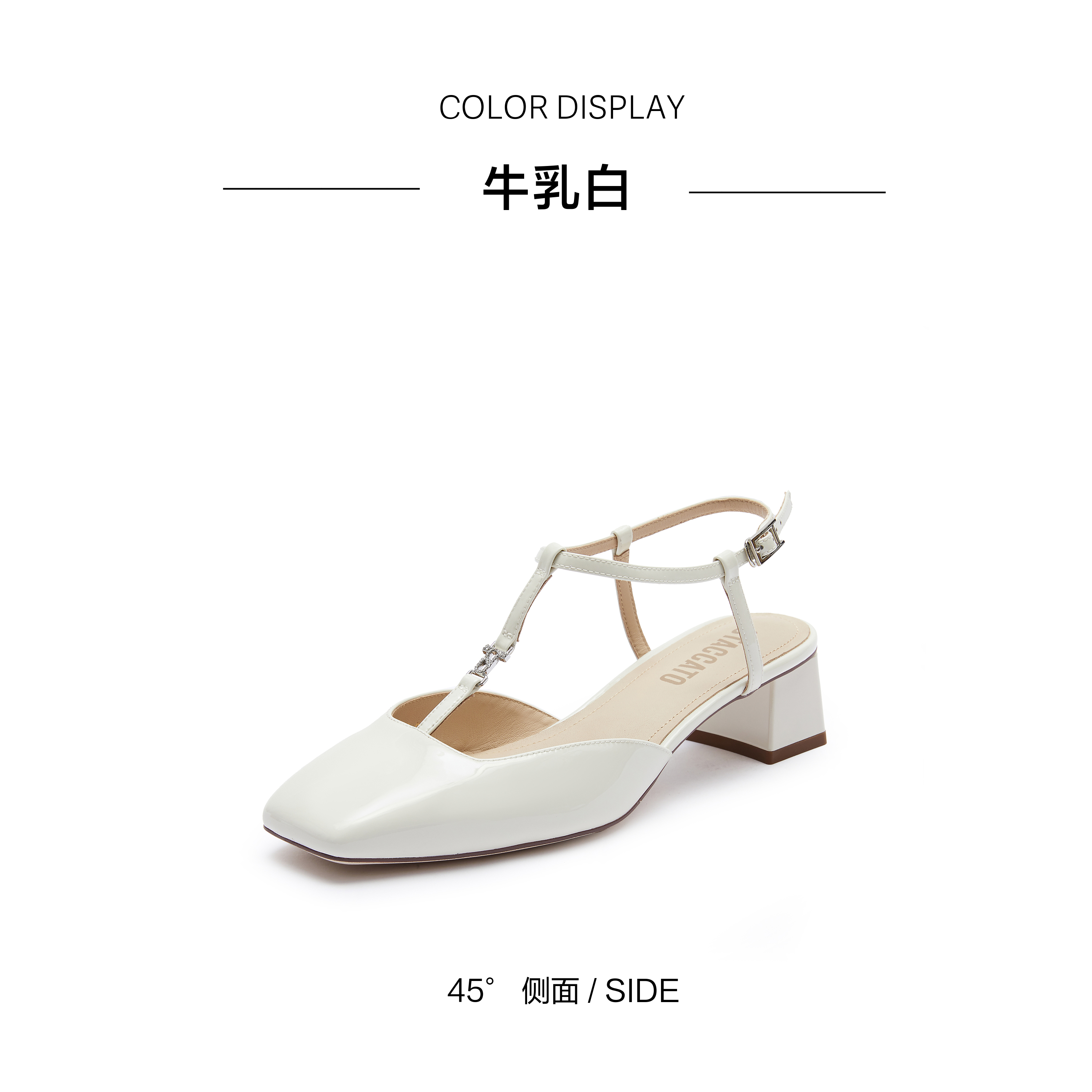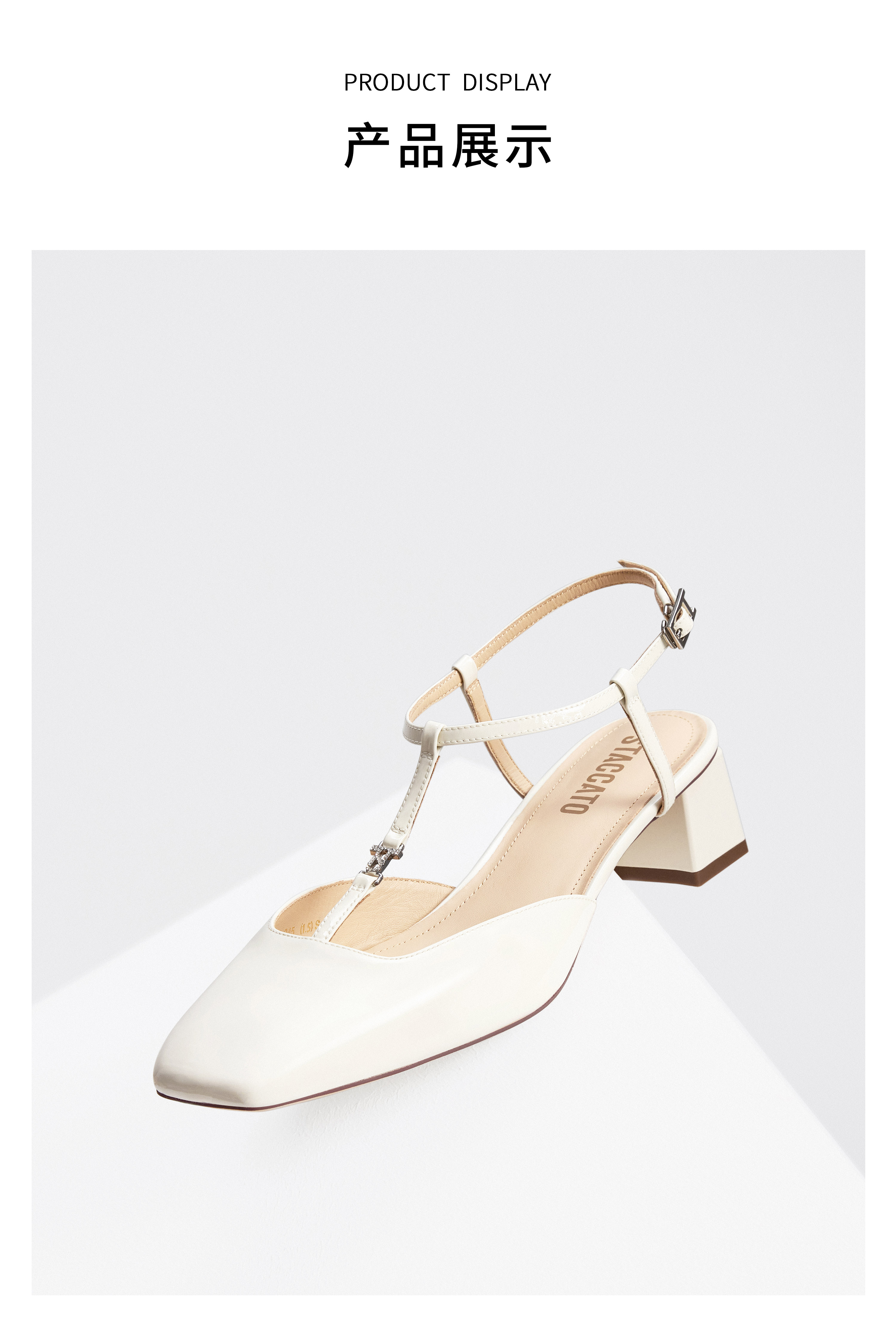 | 鞋类流行款式:玛丽珍鞋 | 鞋头款式:方头 | 执行标准:皮凉鞋GB/T22756-2017 | 跟高范围:中跟鞋(3-5CM) | 鞋面图案:纯色 |