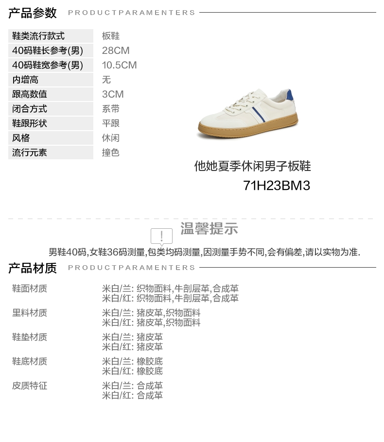 | 40码鞋长参考(男):28CM | 鞋帮:低帮 | 鞋底材质:橡胶底 | 内增高:无 | 鞋面材质:牛剖层革织物面料合成革 |