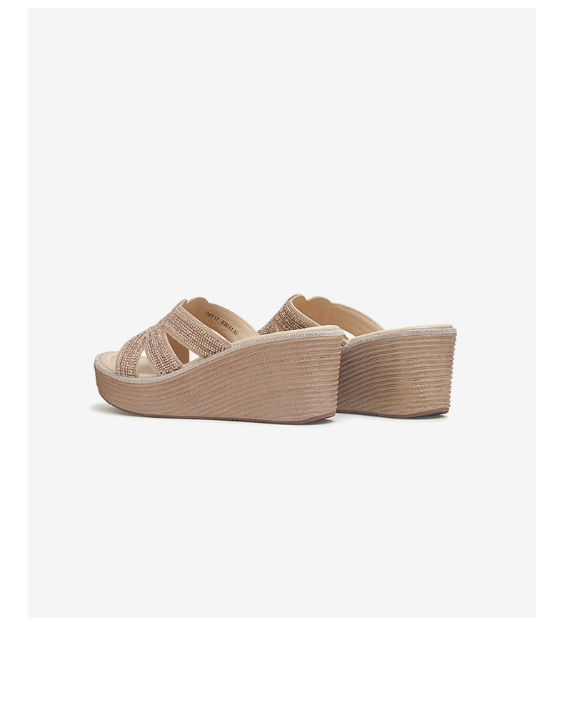 | 鞋头款式:露趾 | 执行标准:皮凉鞋GB/T22756-2017 | 跟高范围:高跟鞋(6-8CM) | 鞋面图案:纯色 | 鞋跟形状:坡跟 |