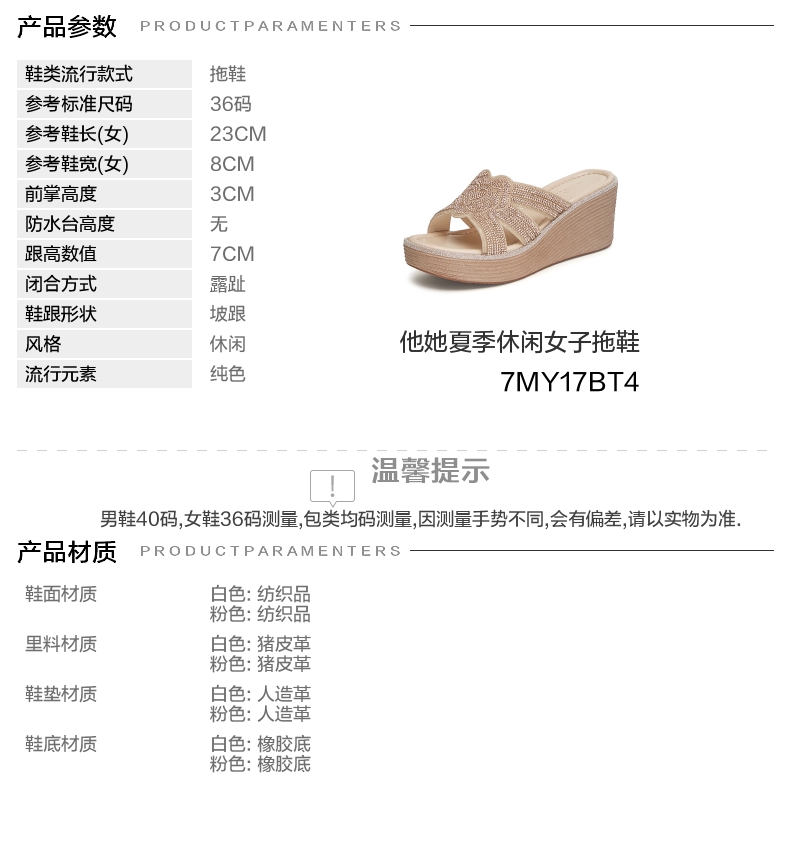 | 前掌高度:3CM | 皮质特征:织物 | 销售季:2024年夏季 | 防水台高度:无 |