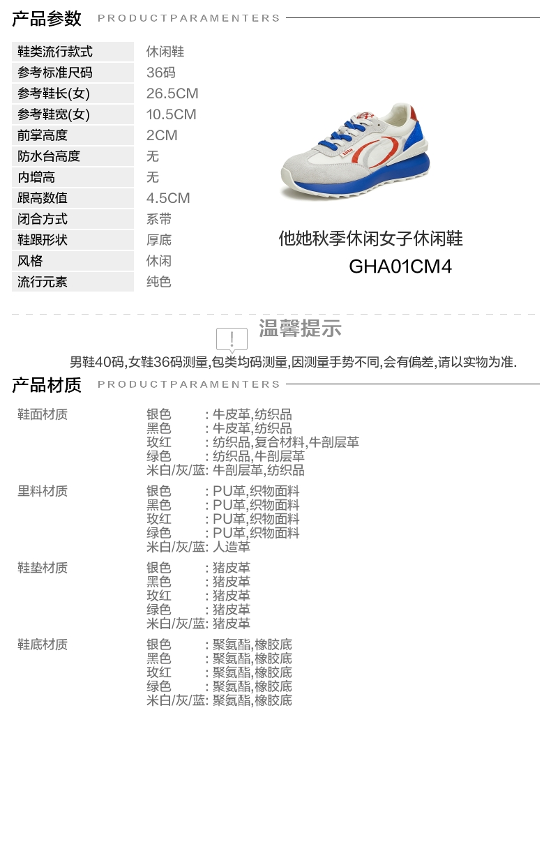 | 参考鞋长(女):26.5CM | 参考鞋宽(女):10.5CM | 风格:休闲 | 年份:2024年 | 色系:银色 |
