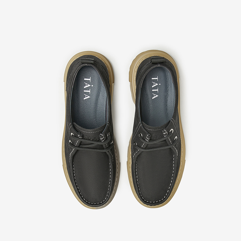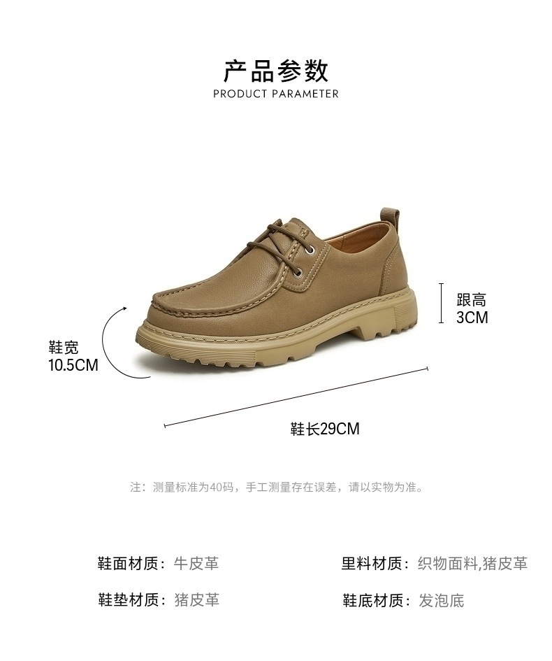 | 鞋跟形状:厚底 | 鞋面材质:牛皮革 | 流行元素:纯色 | 闭合方式:系带 | 风格:休闲 |