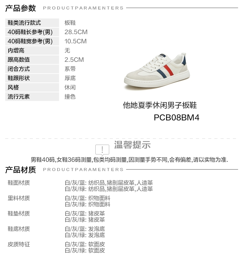 | 40码鞋长参考(男):28.5CM | 鞋帮:低帮 | 鞋底材质:发泡底 | 内增高:无 | 鞋面材质:猪剖层皮革纺织品人造革 |