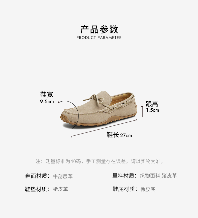 | 风格:休闲 | 色系:杏色 | 跟高数值:1.5CM | 40码鞋宽参考(男):9.5CM | 性别:男子 |