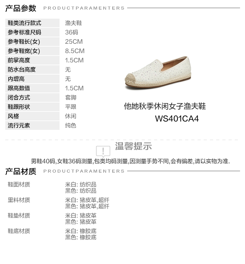 | 闭合方式:套脚 | 所在区域:电子商务 | 配跟:有 | 开口深度:深口 | 风格分类:渔夫鞋 |