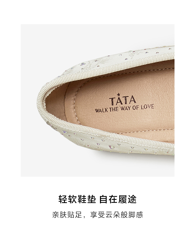 他她(Tata),品牌成立于2003年,致力为都市年轻人群提供时尚潮流、具有性价比的鞋履产品。十五年来“踏踏”的着地声,寓意都市白领元气满满的生活,如时尚“伴履”的TATA一直陪伴左右、伴随走出TATA的时尚步伐。2017年TATA美丽蜕变,TATA STAR元素的加入预示品牌将成为闪亮、前端的时尚鞋履品牌。