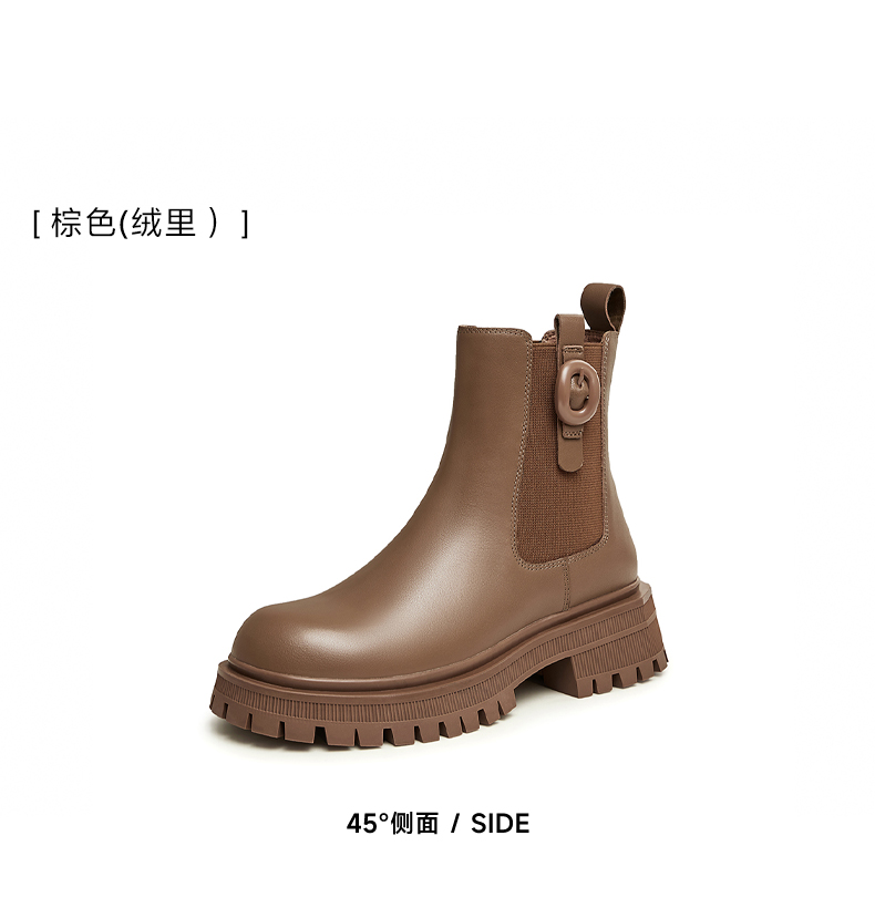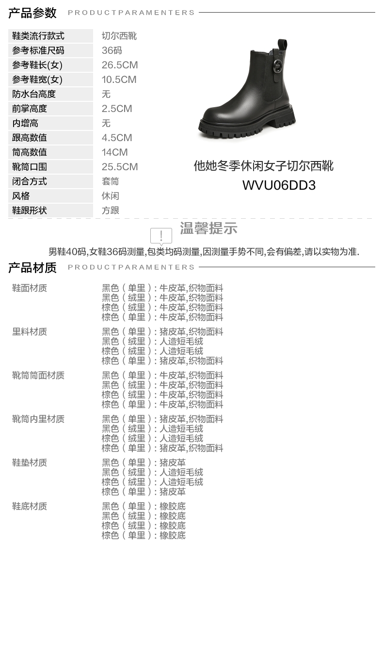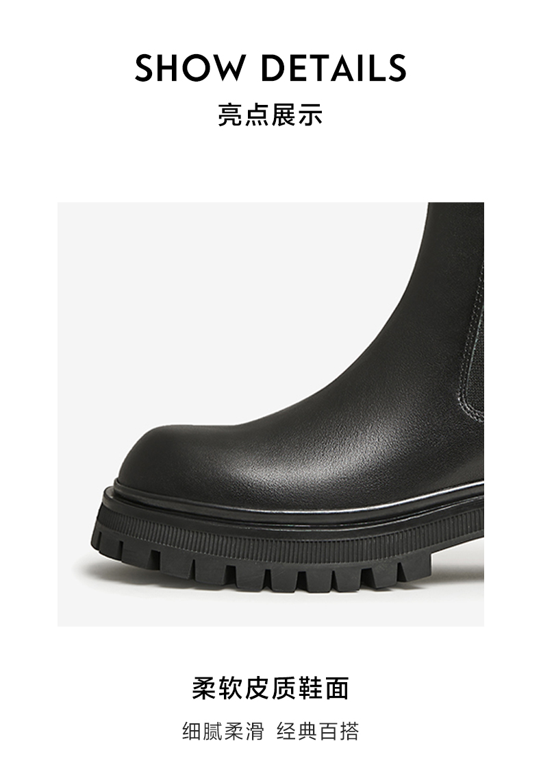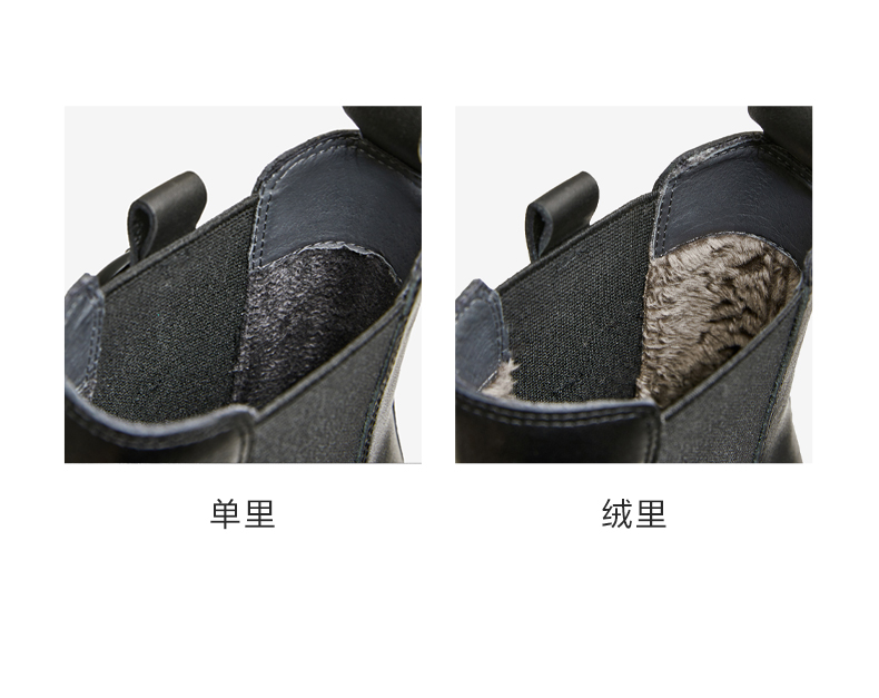 | 帮面材质:织物牛皮革 | 配跟:有 | 靴筒口围:25.5CM | 上市时间:2023年冬季 | 鞋类流行款式:切尔西靴 |