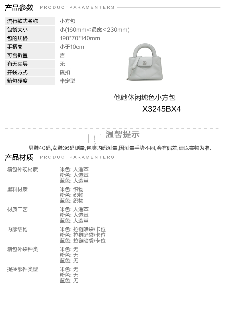 | 风格:休闲 | 年份:2024年 | 色系:米色 | 适用场景:休闲 | 流行款式名称:小方包 |