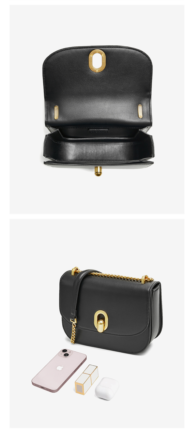 | 色系:黑色 | 适用场景:休闲 | 流行款式名称:马鞍包 | 开袋方式:锁扣 | 性别:女子 |