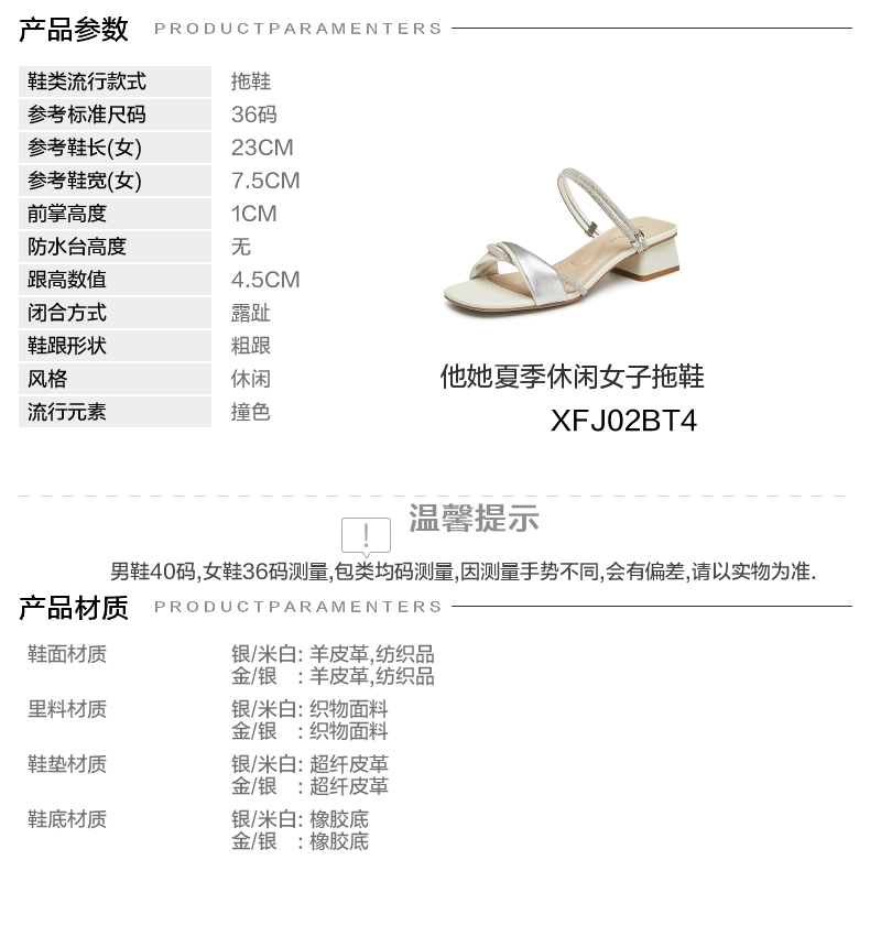 | 流行元素:撞色 | 参考鞋长(女):23CM | 参考鞋宽(女):7.5CM | 闭合方式:露趾 | 风格:休闲 |