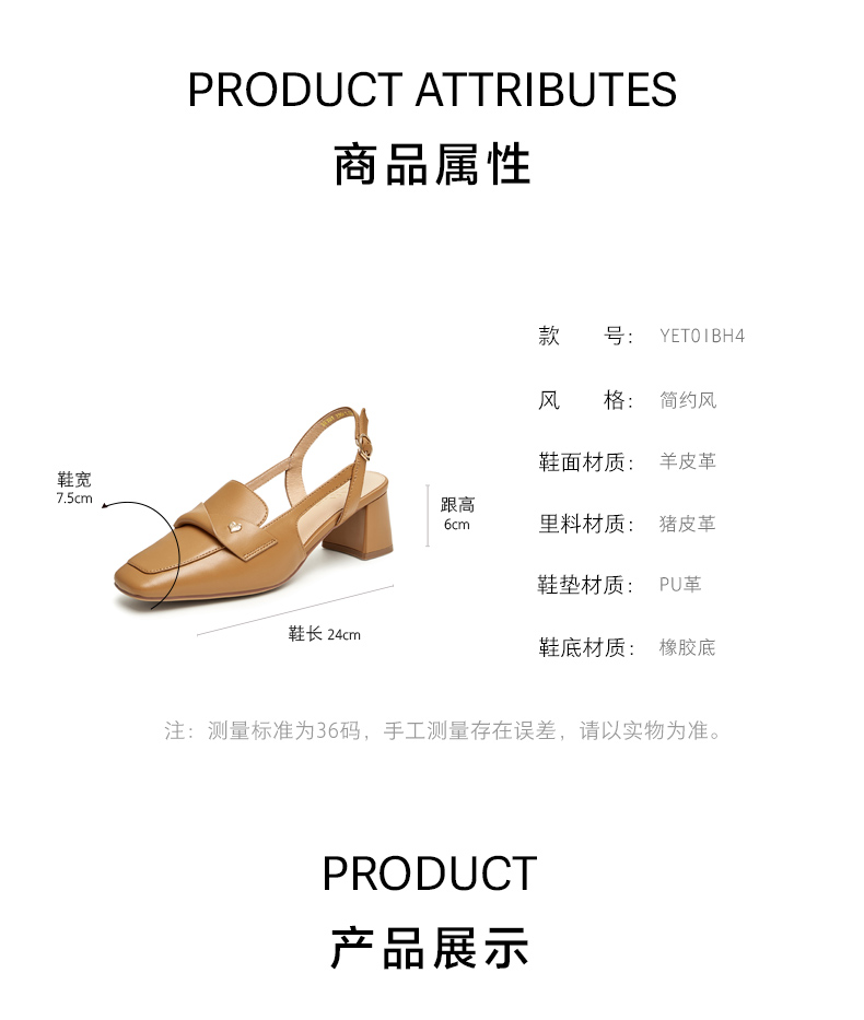| 前掌高度:0.5CM | 皮质特征:软面皮 | 销售季:2024年夏季 | 防水台高度:无 |