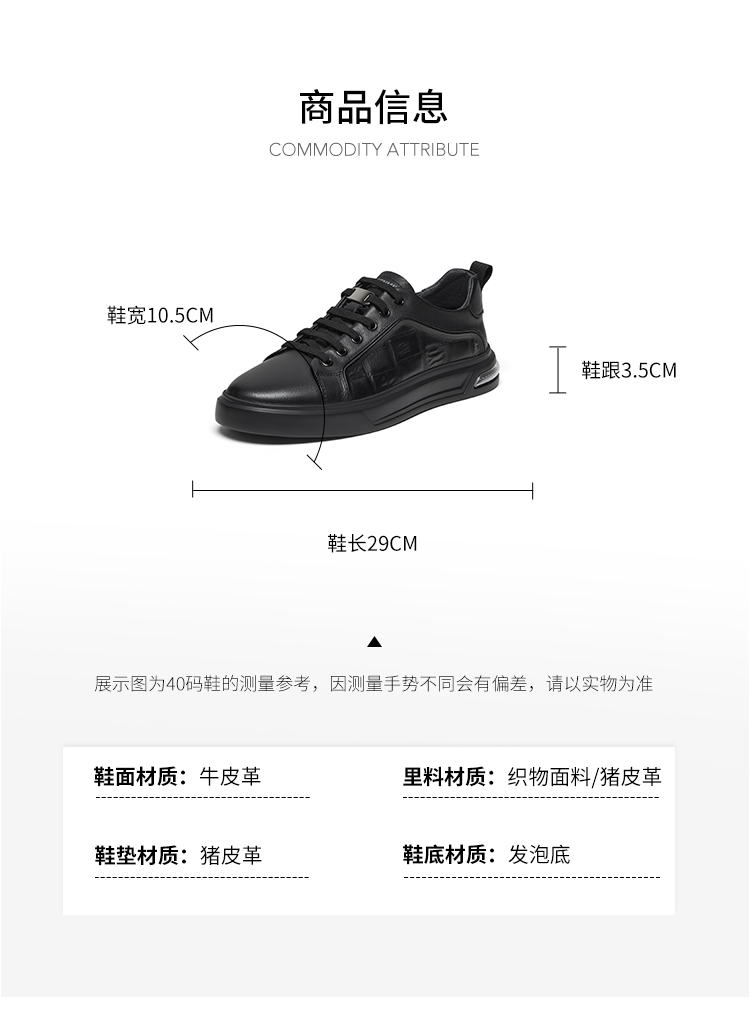| 40码鞋长参考(男):29CM | 鞋帮:低帮 | 功能科技:耐磨 | 鞋底材质:发泡底 | 内增高:无 |