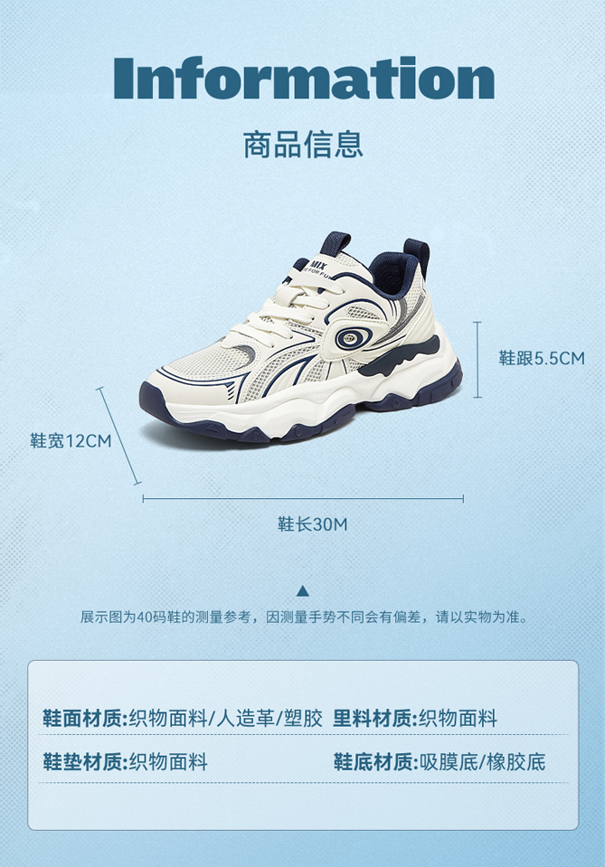 | 40码鞋长参考(男):30CM | 鞋帮:低帮 | 功能科技:防滑 | 鞋底材质:吸膜底橡胶底 | 内增高:无 |