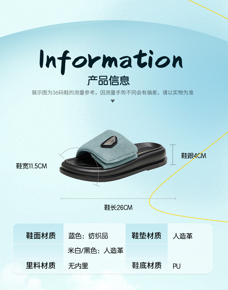 | 前掌高度:3CM | 皮质特征:织物 | 销售季:2023年夏季 |